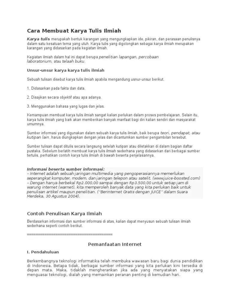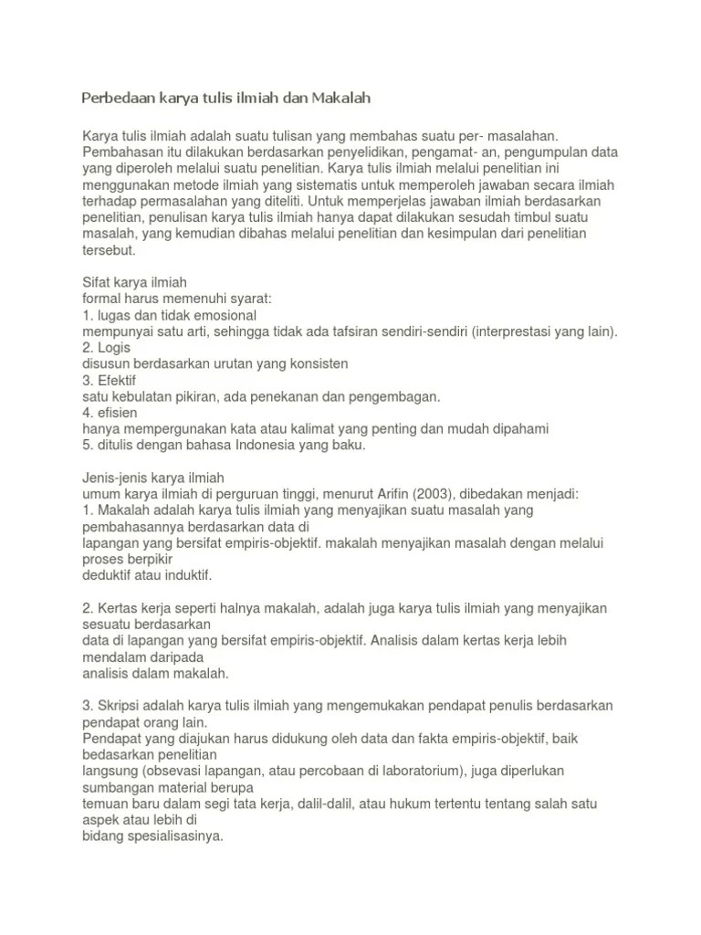 Contoh karya ilmiah dalam bentuk makalah. Sebagai bahan acuan untuk melakukan suatu penelitian terhadap suatu masalah. Data sesuai fakta · 3. Pembahasan sesuai dan menyeluruh · 6. Karakteristik umum karya ilmiah bersifat objektif ,maksud objektif adalah.